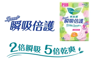 日本革新研發Speed+引力瞬吸層,菱格設計面層增加吸收空間,並形成引力通道,將液體快2倍吸收及鎖進底層,瞬間的大流量亦能一吸到底,無須擔心滲漏。 瞬間鎖濕,能將液體鎖在底層,有效減少表層80%的殘留,肌膚時刻享受5倍清爽。