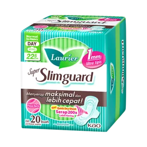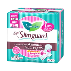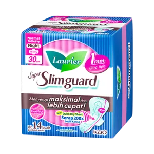 Pembalut ultra slim dengan Teknologi Lapisan Serap Ultra Tipis 1mm Serap 200x* Menyerap lebih cepat dan fleksibel, mengikuti bentuk tubuh.