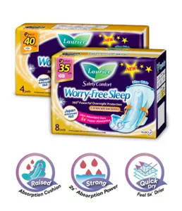 Enjoy a worry-free sleep with Laurier’s newly improved Safety Comfort with Gathers Night Range! Developed with Japan’s Advanced R&D, Laurier Safety Comfort is specially designed to give you 360° powerful overnight leakage protection so you can sleep soundly through the night. It also boasts additional features like: