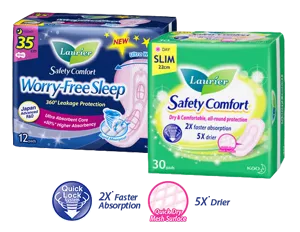 Look no further, Laurier’s Safety Comfort range boasts a revolutionary suction-like power that keeps you protected even during the heaviest flows! Experience absorption and dryness like never before so you can go about your day with confidence.