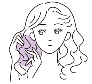 以手掌從內外兩側夾住髮絲塗抹, 再加以調整具捲度的部分。