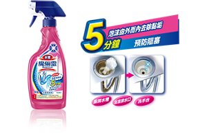 您知道水管也需要定期保養、清潔嗎? 許多消費者常會等到水管堵塞、水流不通的時候,才緊急使用水管疏通劑暢通水管;但其實,只要每週花5分鐘的時間,保養水管,讓水管一直保持在乾淨、暢通的狀態,就可以不必擔心水管堵塞的突發危機囉! 魔術靈水管清潔劑採日本研發 勁速滲透泡,能夠由外而內快速深入水管滲透污垢,徹底去除造成堵塞的黏稠污垢。 獨特噴槍型設計,輕鬆一噴,就能進行水管清潔,避免水管管壁裡的黏垢堆積,減少堵塞發生;此外,具有99.9%除菌功能,有效清除水管中的細菌和異味,並且深入霉根去除霉垢!